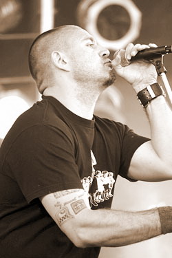 | Лидер группы «Ляпис Трубецкой» Сергей Михалок на проверку оказался не «розовощеким пэтэушником», а матёрым анархистом. Фото: Дмитрий Дурыгин |