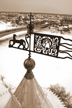 Прапор Покровской башни занял свое исконное место. Это – завершающий аккорд почти годовых работ по восстановлению шатра уникального памятника. Реставраторы-строители шатра, работающие в труднейших условиях, на 30-метровой высоте, на морозе, с редкостным душевным участием относились к кузнечной работе.
