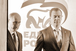 Падающий (нужно ли для таких высказываний ссылаться на статистические данные?!) рейтинг «Единой России» могут спасти только две вещи: если лидеры других партий дружно заявят, что продадут всю страну дьяволу или если остатки имиджа Путина удастся перелить, в виде донорской помощи, слабеющей на глазах партии власти.